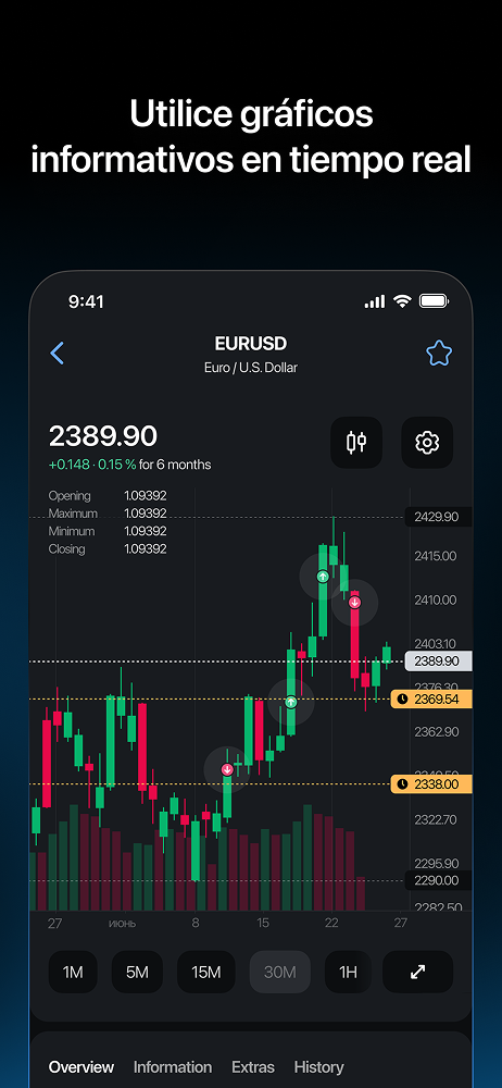 Interfaz fácil de usar e intuitiva para operar en los mercados financieros.
