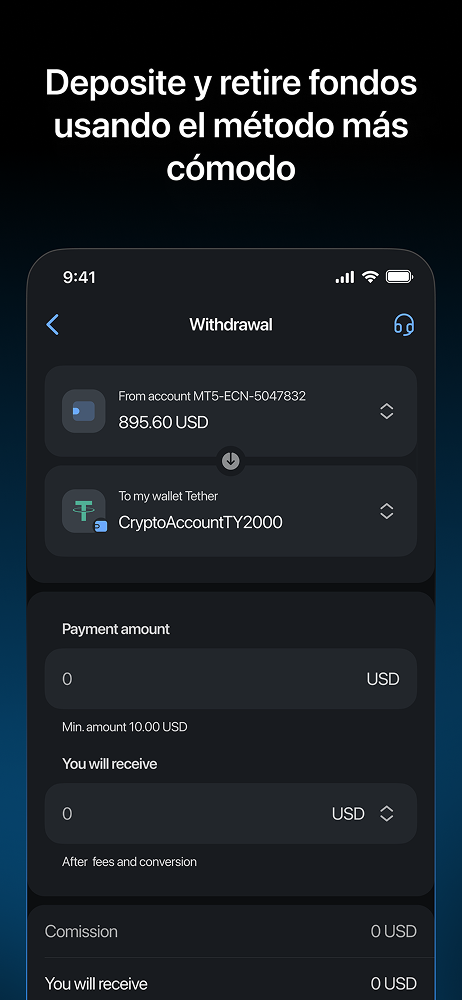 Variedad de métodos de pago y retiros de fondos automáticos de hasta 5000 USD al día.